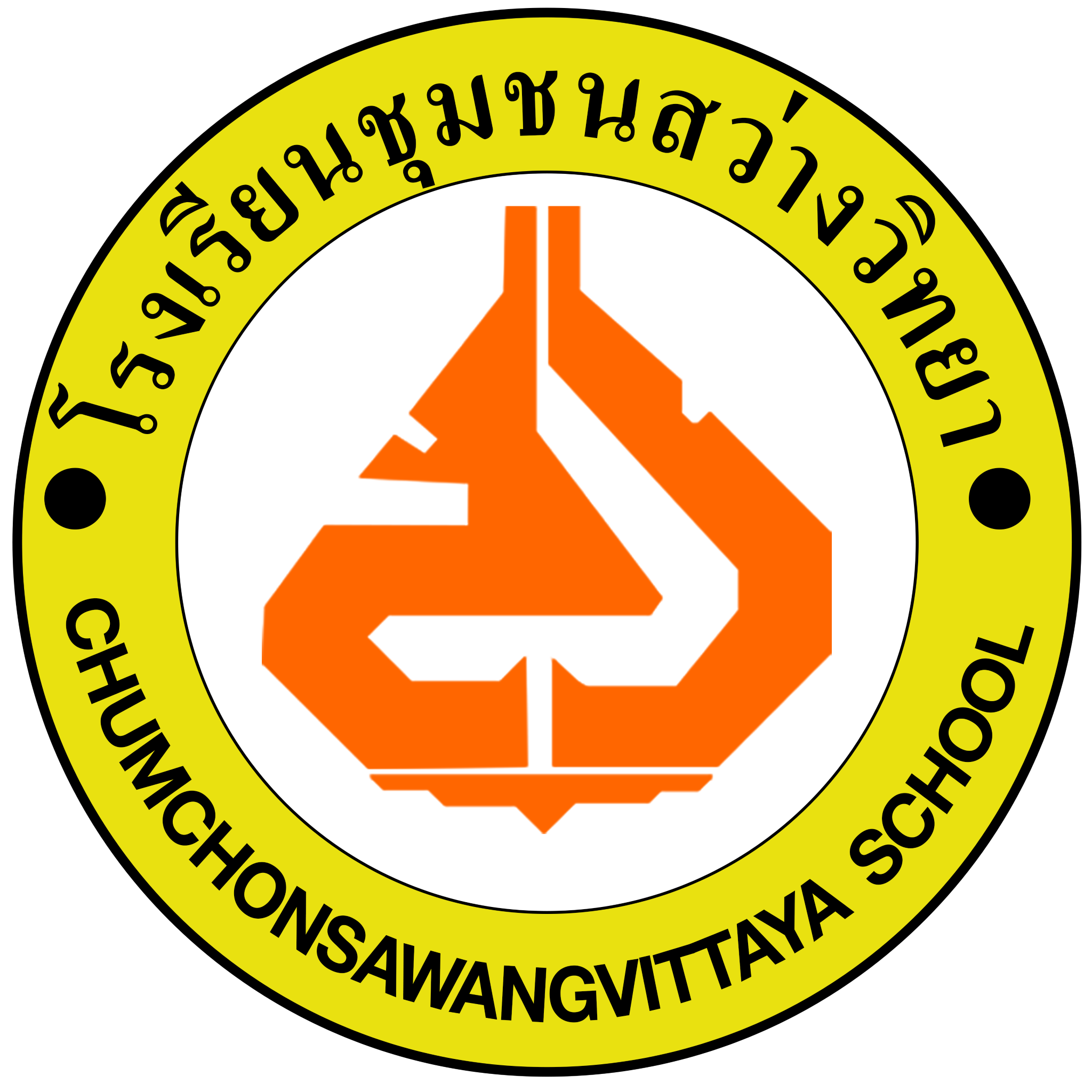 วงกลมสีเหลืองและชื่อโรงเรียนภาษาไทยและภาษาอังกฤษ มาจากโรงเรียนชุมชนสว่างวิทยายึดมั่นในศาสนาและพัฒนาการศึกษาก้าวไกลสู่ความเป็นสากล